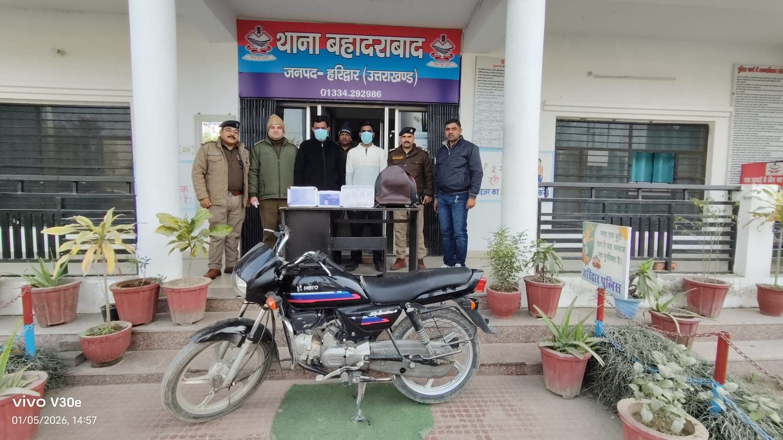 HINDUSTAN NEWS TODAY, हरिद्वार। बीते साल 30 दिसंबर को बहादराबाद क्षेत्र में हुई सेल्समैन लूट की वारदात का पुलिस ने खुलासा किया है। पुलिस ने पांच दिनों में अंतरराज्यीय गिरोह के दो शातिर सदस्यों को चोरी की बाइक के साथ गिरफ्तार कर लिया।